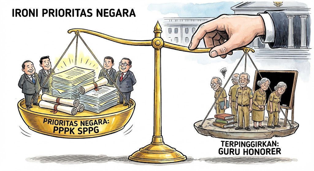 Jika negara gagal membaca urgensi ini, maka pelantikan PPPK SPPG di tengah ketertinggalan nasib guru honorer akan tercatat sebagai ironi kebijakan: negara hadir secara administratif, tetapi absen secara moral dalam dunia pendidikan.(*)